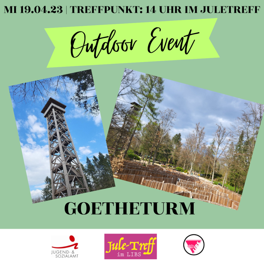 Wir hoffen, dass ihr schöne Ferien habt und das Wetter schon etwas genießen konntet! Wir hoffen am 19.04 auf jeden Fall auf viele Sonnenstrahlen, damit wir mit euch gemeinsam zum Goetheturm …