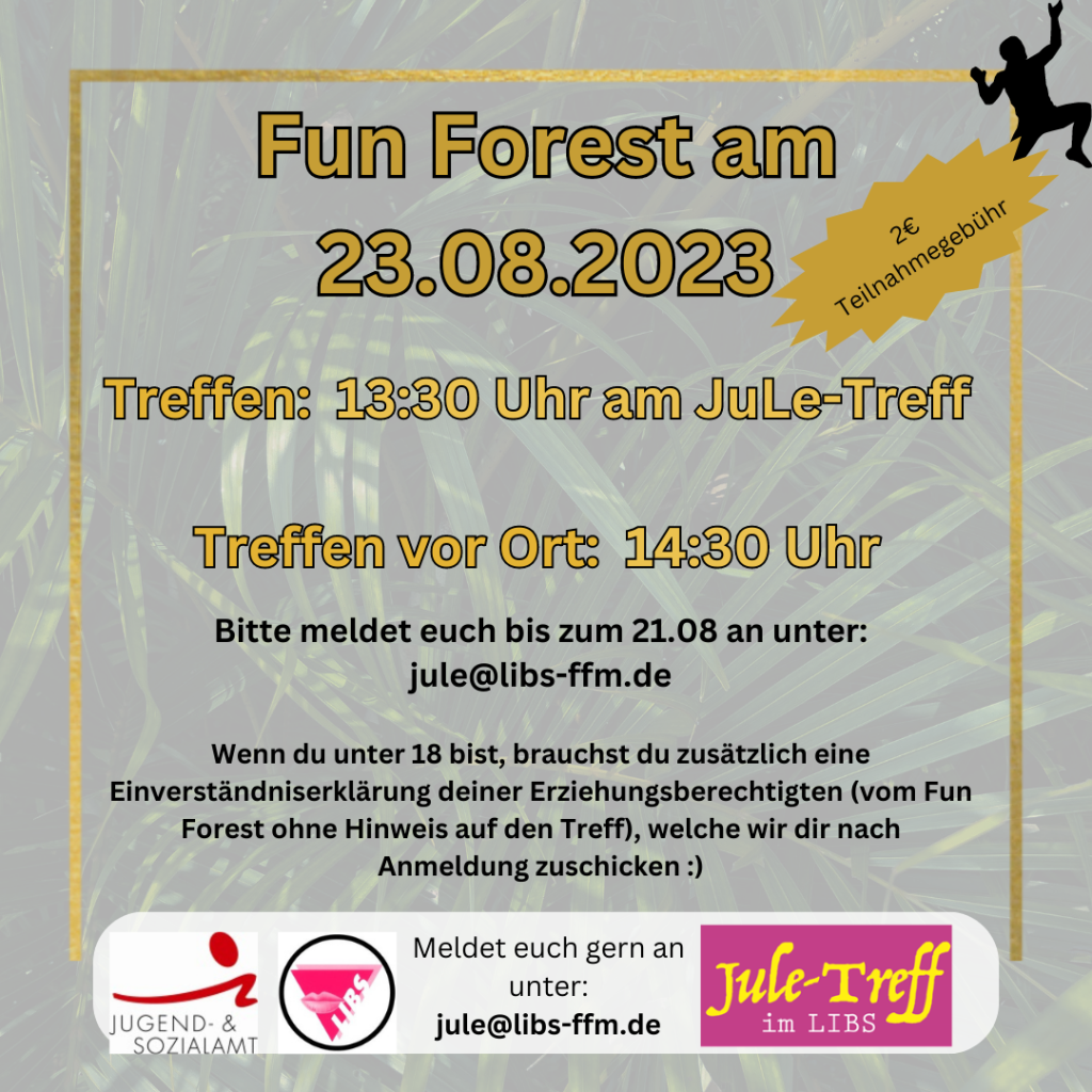 Bitte meldet euch an, wenn ihr mit uns gemeinsam in den Kletterwald nach Offenbach möchtet :)