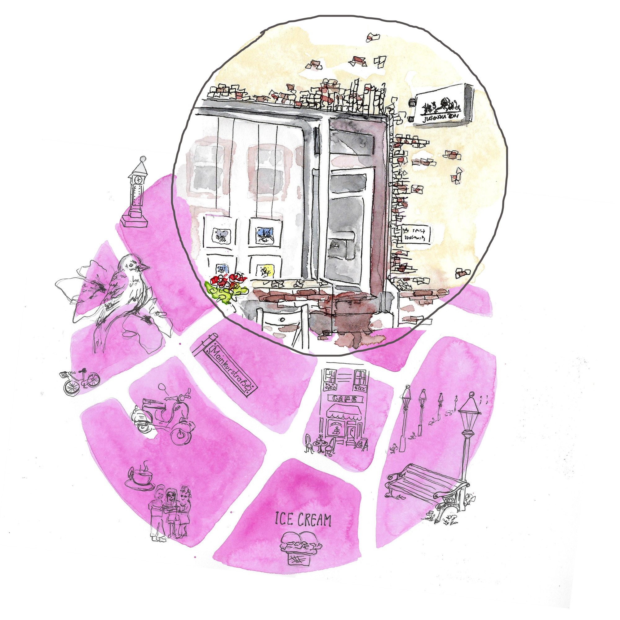 Wer mag, kann das skizzierte Bild im Malatelier des Jugendladen Bornheims aquarellieren.