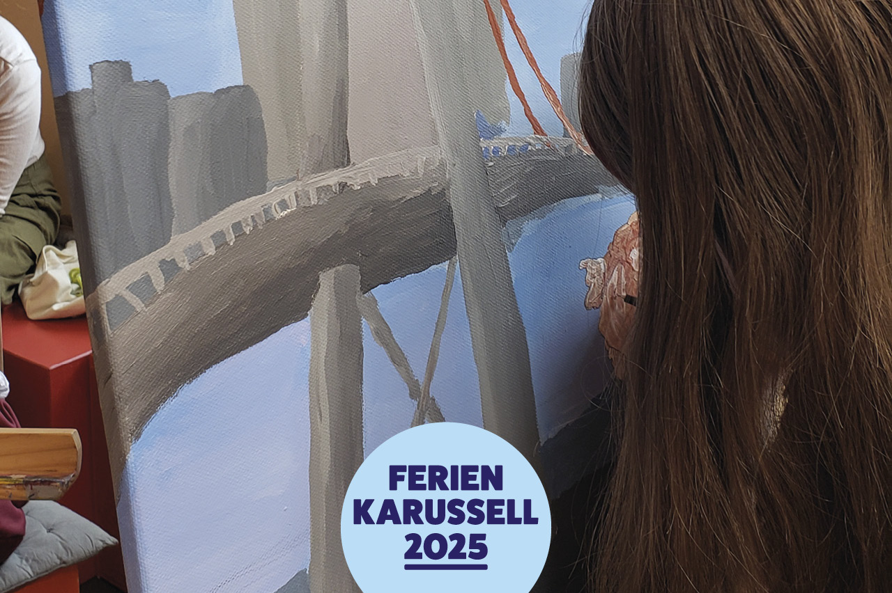 Die Stadt rund um das Historische Museum dient als künstlerische Inspiration. Architektur, Menschen, abstrakte Strukturen der Stadt, vom Commerzbank-Hochhaus bis zu den Baumkronen aus der Vogelperspektive, sind Thema. Mit den unterschiedlichsten Materialien, von der Zeichenkohle über Pastellkreiden bis zur Digitalkamera und Collage-Material, entstehen Skizzen und Entwürfe im Stadtraum, die am Ende zu einem großformatigen Gemälde in Acryl werden. Bitte einen Pausensnack mitbringen.