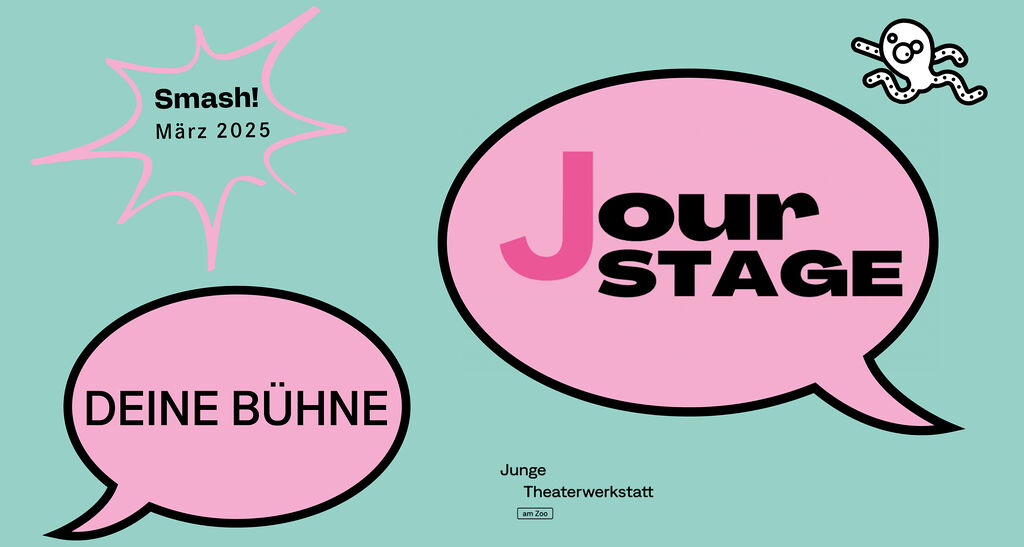 Eine Bühne ganz für dich. Theaterspielen, Singen, Malen, Tanzen, … zeig uns, was du kannst - in der Jungen Theaterwerkstatt am Zoo. Du weißt noch nicht, was du auf der Bühne zeigen möchtest? Kein Problem! Vorher gibt es einen Workshop, in dem du Ideen sammeln und ausprobieren kannst. JourStage wurde erfunden und wird realisiert von JourNutz, einer Gruppe Jugendlicher, die sich für die Beteiligung junger Menschen im Theater einsetzt.