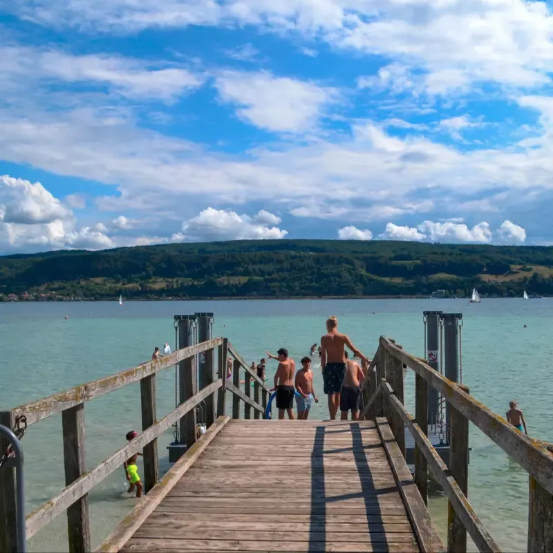 Insel-Feeling im Süden Deutschlands Blau-grün glitzert das Wasser des Bodensees in der Sonne und Schiffe mit weißen Segeln nutzen die leichte Brise. Unser Zeltplatz liegt auf der Halbinsel …