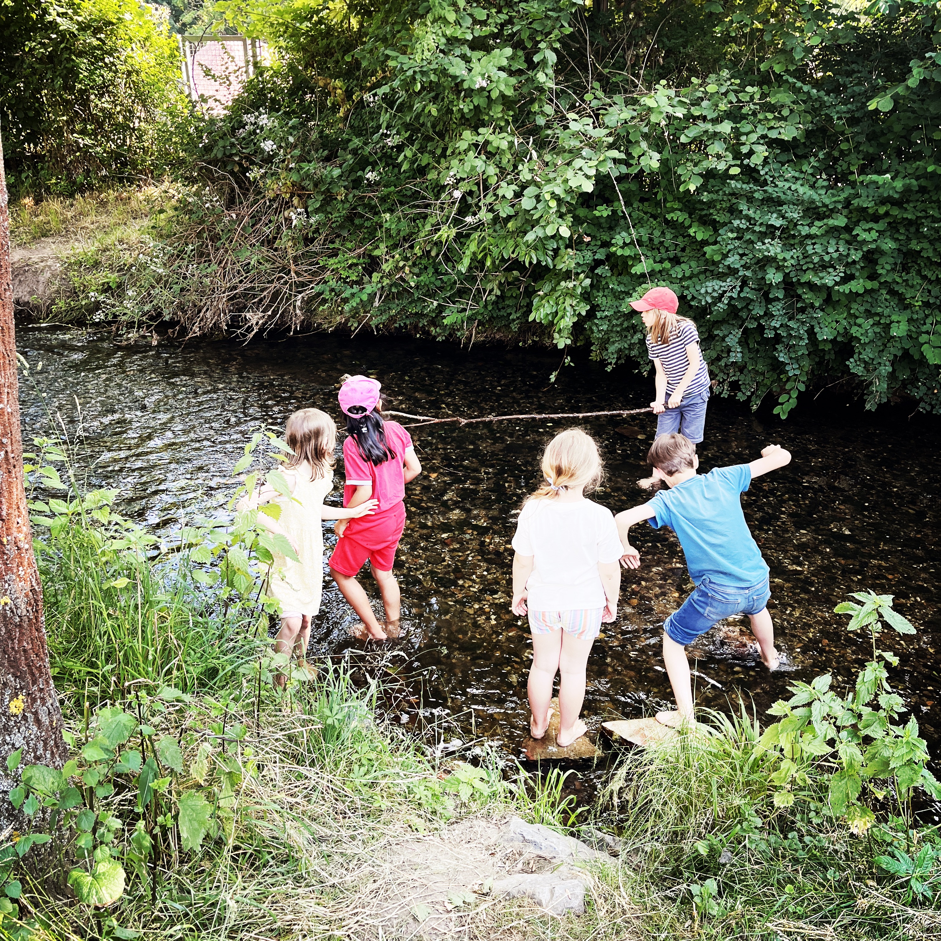 Verbringen viel Zeit mit den Tieren, helfen bei der Versorgung der Tiere mit, erkunden die Mühleninsel, machen Lagerfeuer, basteln, werken und gärtnern, kochen auch mal ein Mittagessen selbst, toben und ruhen uns aus, erkunden den Heuboden und das Gelände. Das wird schön!