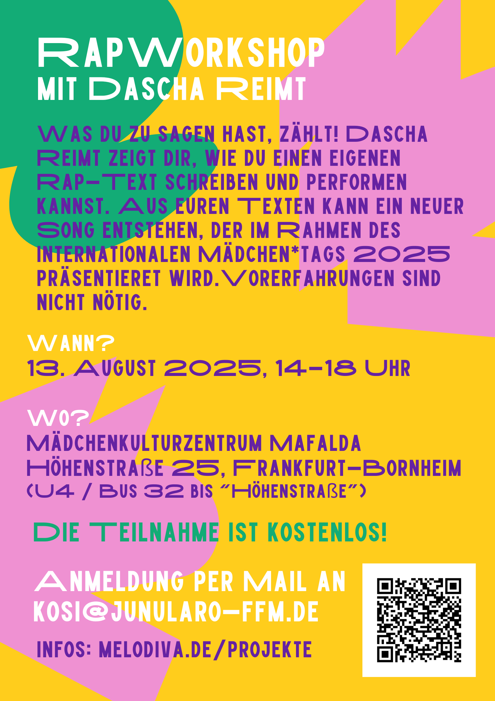 Ort: Der Workshop findet im Mädchenkulturzentrum Mafalda, Höhenstraße 25 statt.